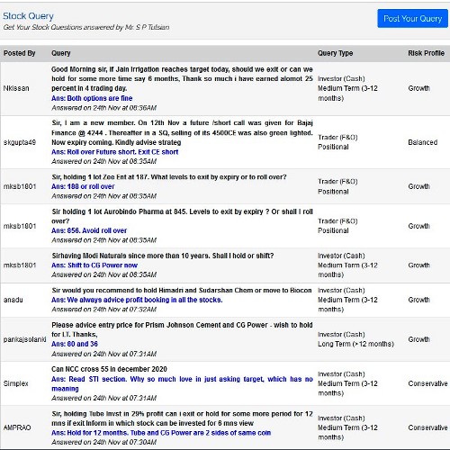 Get real time access to Market Expert Mr. SP Tulsian for any Stock related queries you may
